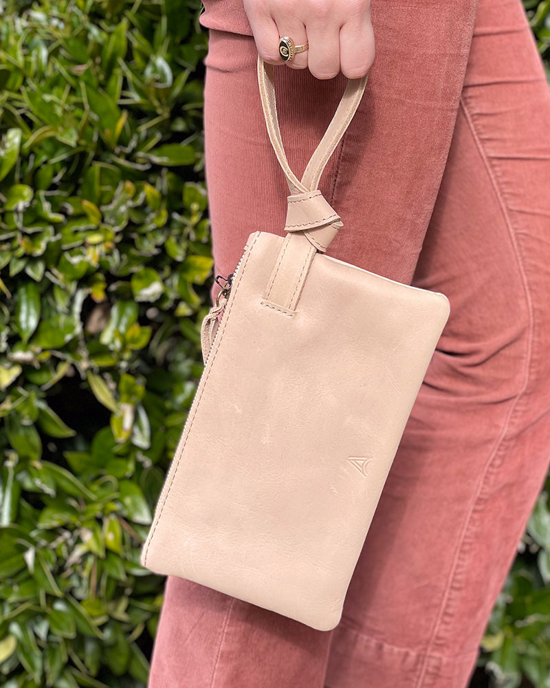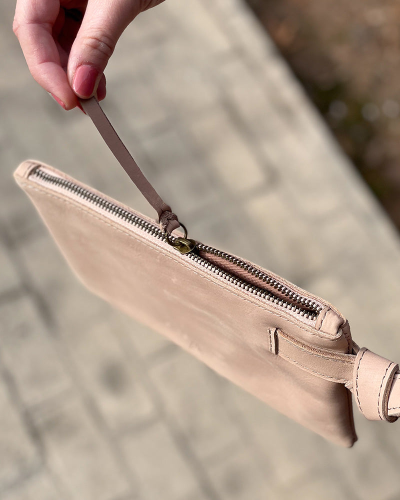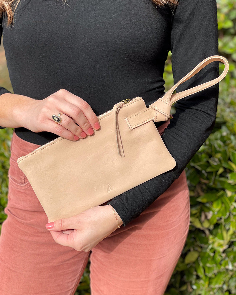 Just the right size for the essentials while still looking great on the go! Complete with a zipper top and a knotted wristlet strap, this bag will be your new favorite!