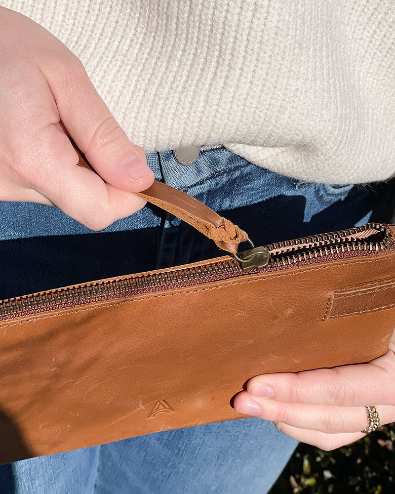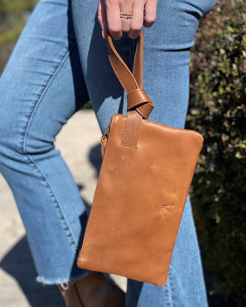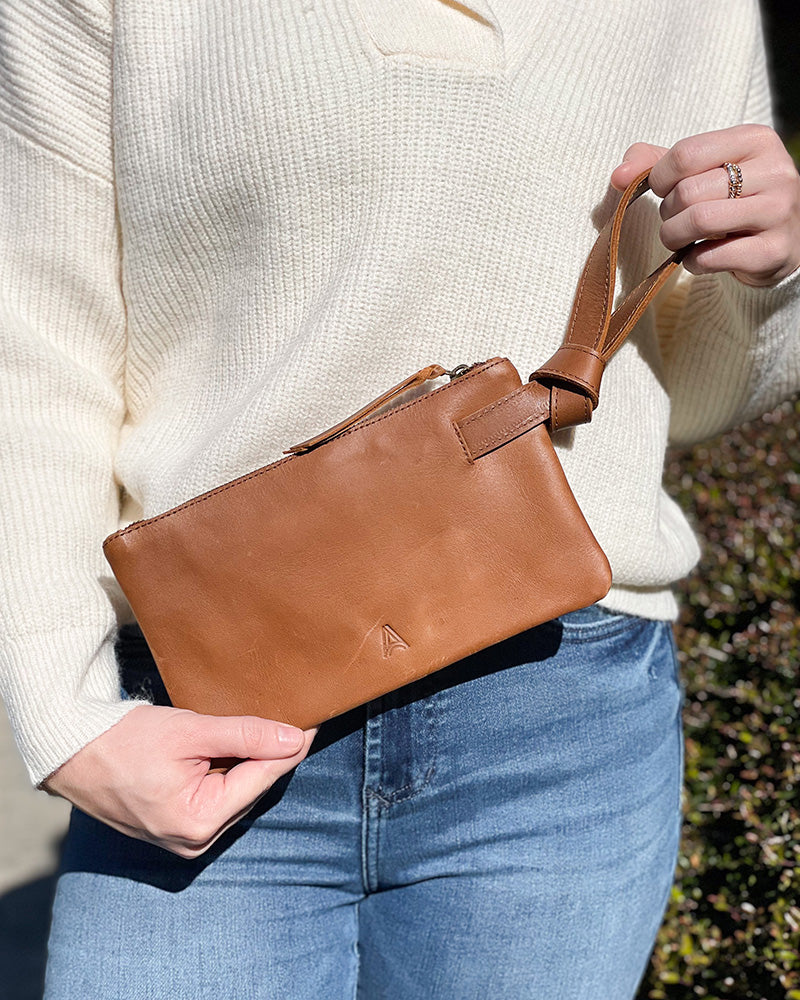 Just the right size for the essentials while still looking great on the go! Complete with a zipper top and a knotted wristlet strap, this bag will be your new favorite!