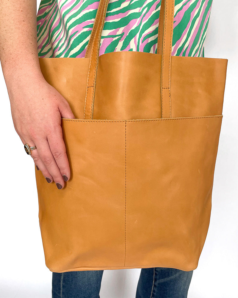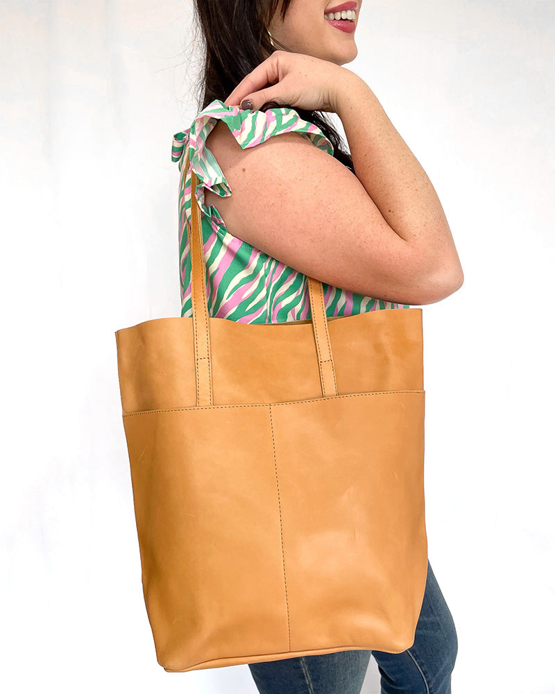 A new, sleek tote is just what your closet needed! With 1 interior pocket and 2 deep exterior pockets, this bag will give you easy access to all of your necessities.