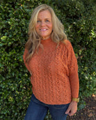 This sweater is the epitome of fall! This burnt orange striped cable knit is the perfect staple - pair with a midi skirt or dark denim to create a classic look. For the few colder game days, this is a great option to add your favorite game day accessories to add a touch of spirit.