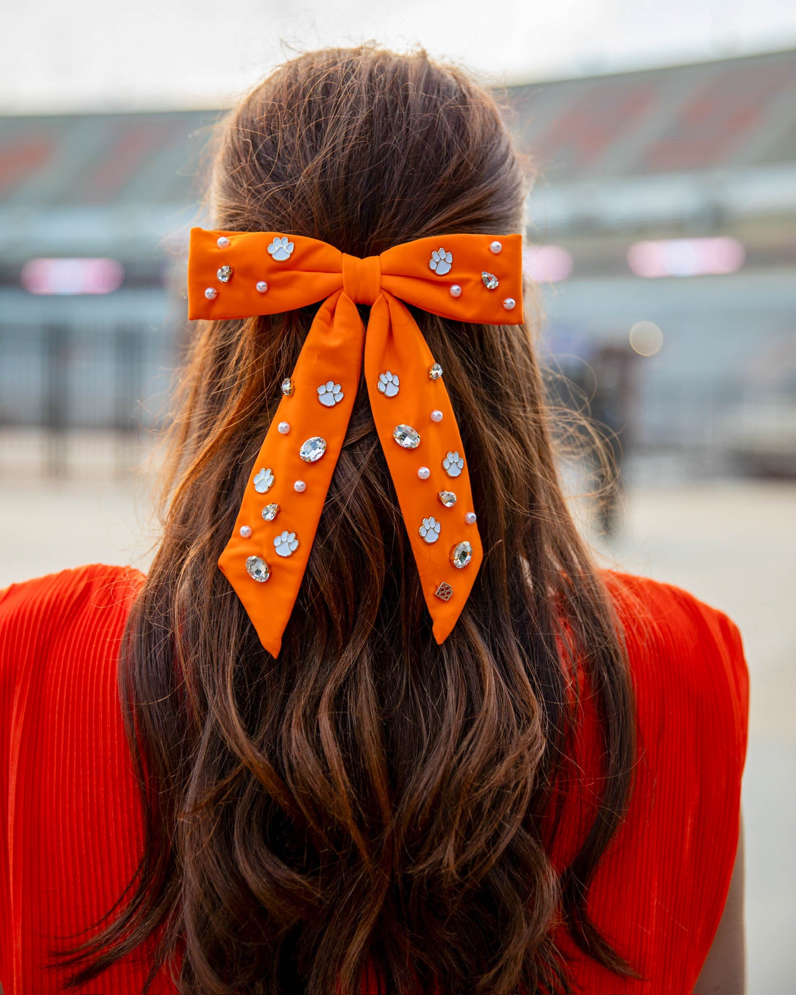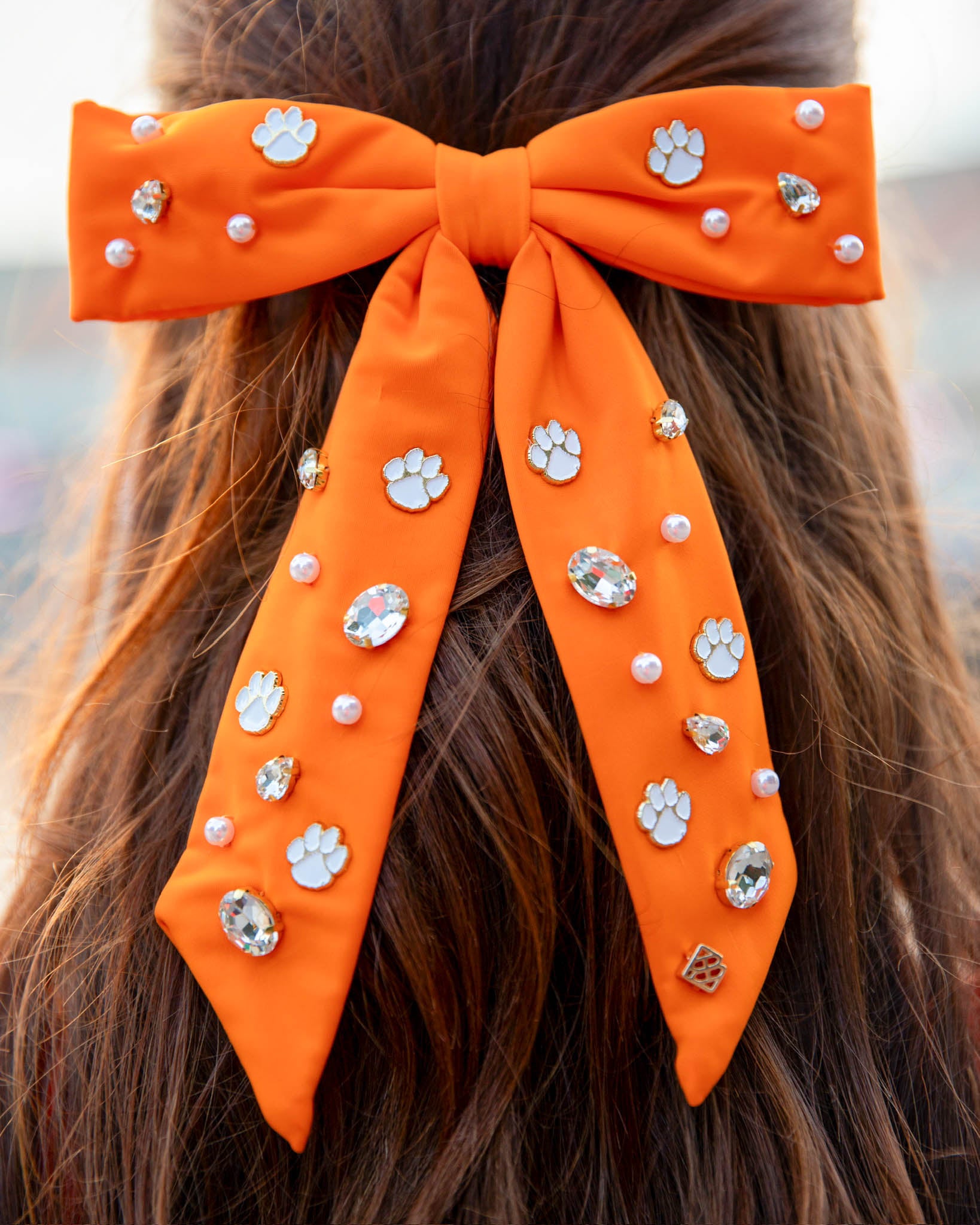 Pearls, Jewels, and the Tigers? Yes, please! This bow is the perfect addition to any outfit to make it game day ready! This ribbon style bow is the perfect way to show you are "All in" this season!