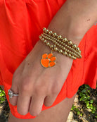 Add a touch of Clemson pride to any bracelet with this easy-to-attach Clemson charm! Featuring a secure clasp for quick and effortless styling, this charm is perfect for game day or everyday wear. Whether you're customizing your favorite bracelet or gifting it to a fellow Tiger fan, this charm brings the perfect pop of team spirit.