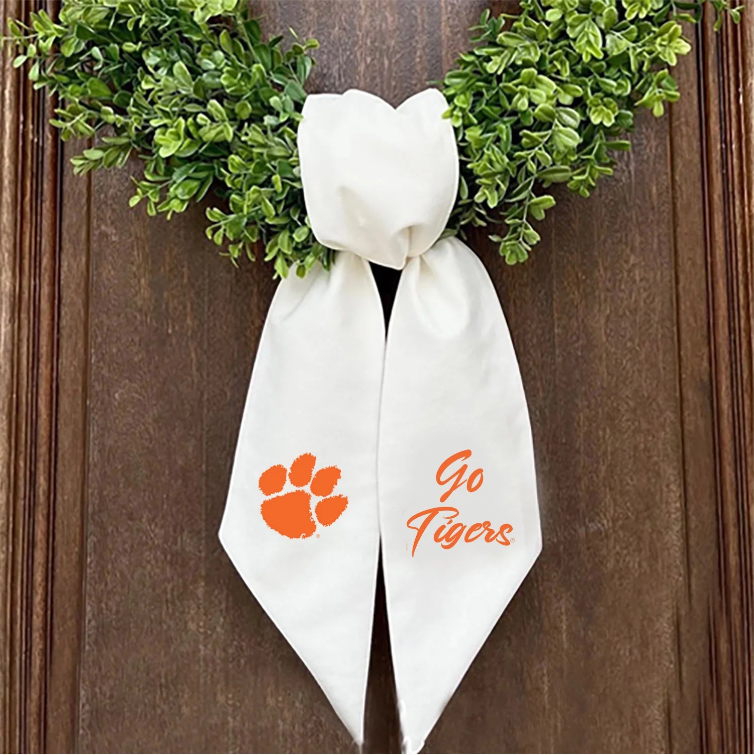 Let everyone know what team you are rooting for this season!! Wreath sashes are the newest thing and we are loving it! These Clemson sashes are just what you need to support the tigers all the way from your front porch!