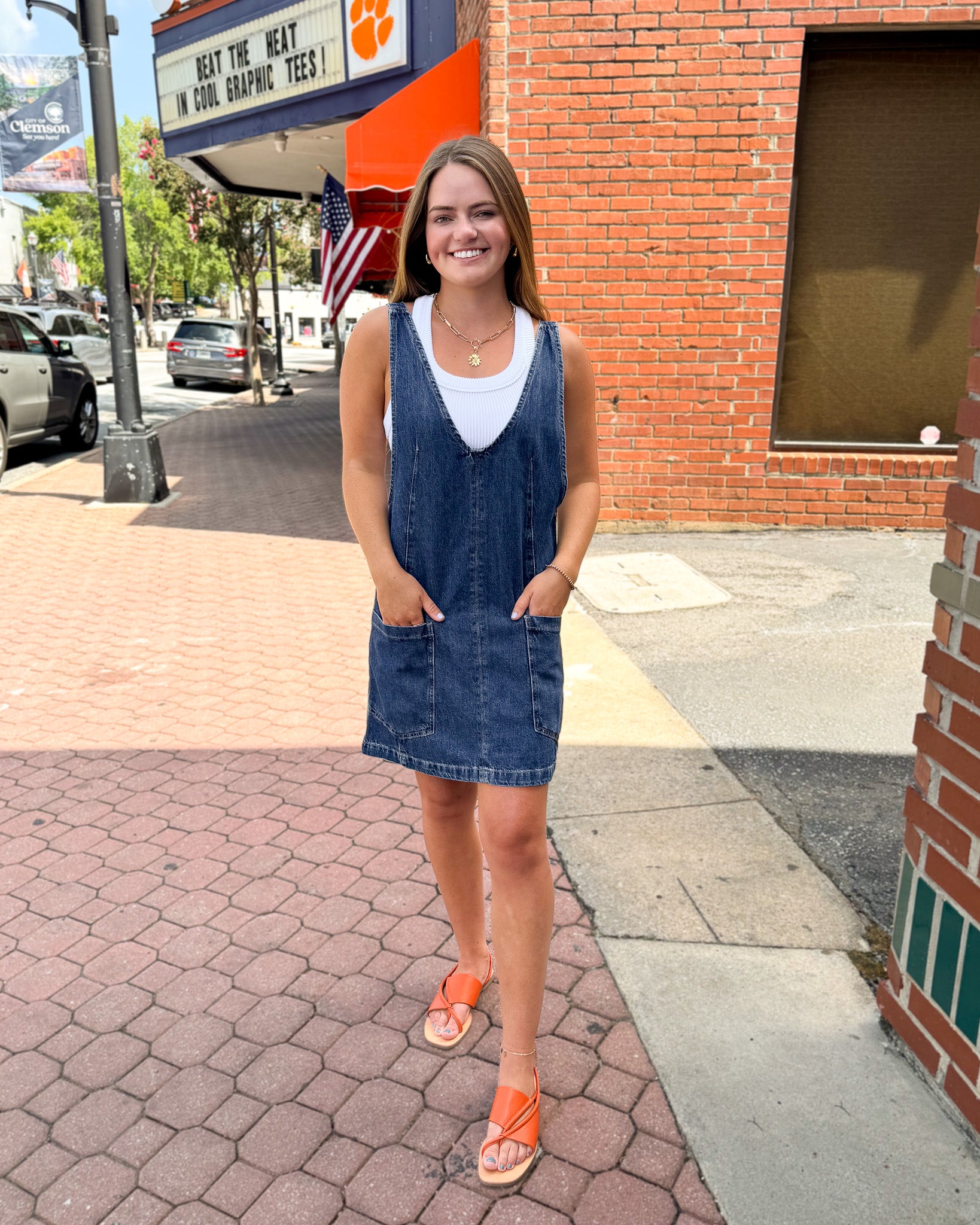 The perfect transitional jean dress has arrived, and is ready to go home with you. The options are endless with how you can style it. Depending on the day, you can pair it with a body-suit, graphic tee, or a sweater.