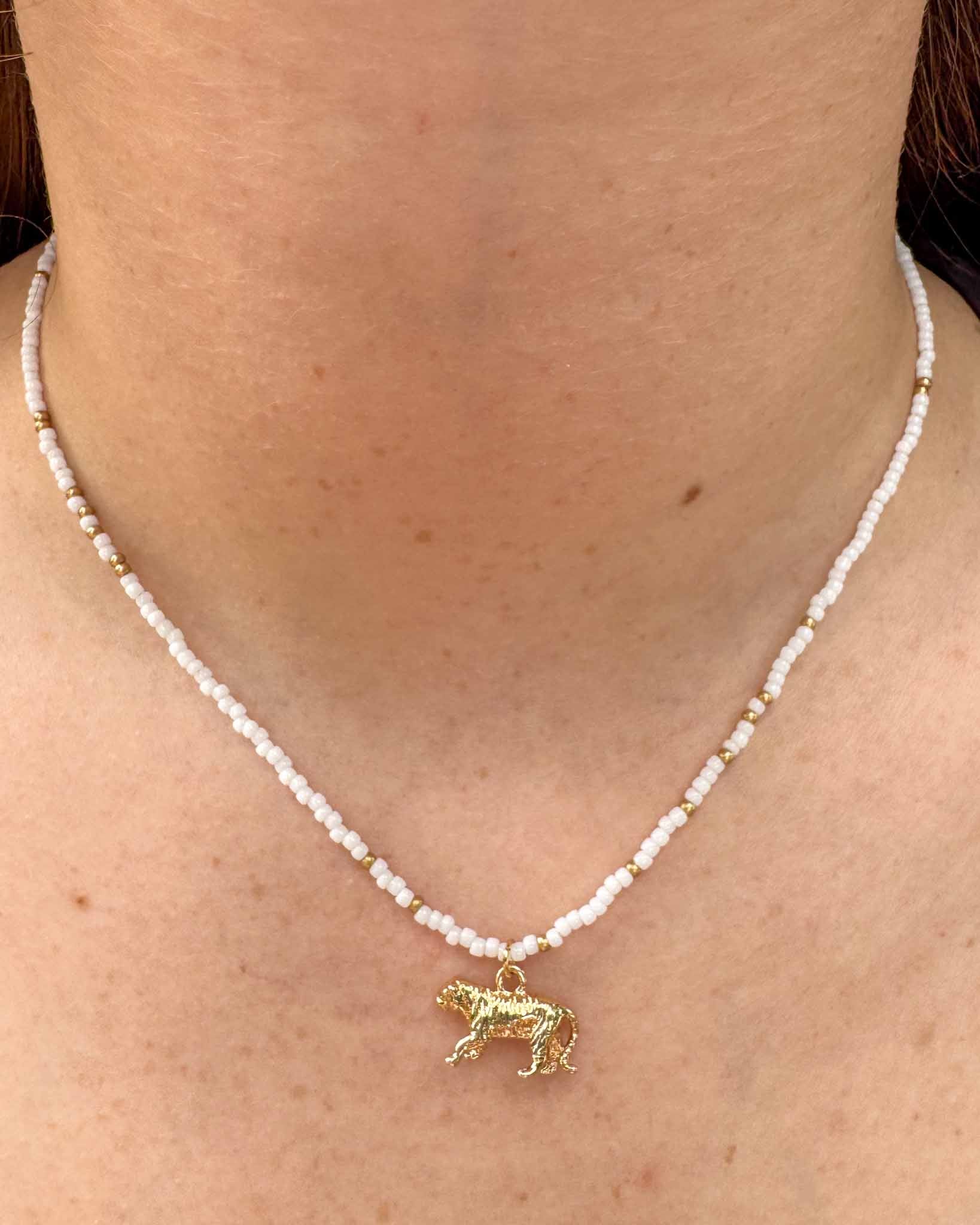 Dainty Tiger Beaded Necklace - White
