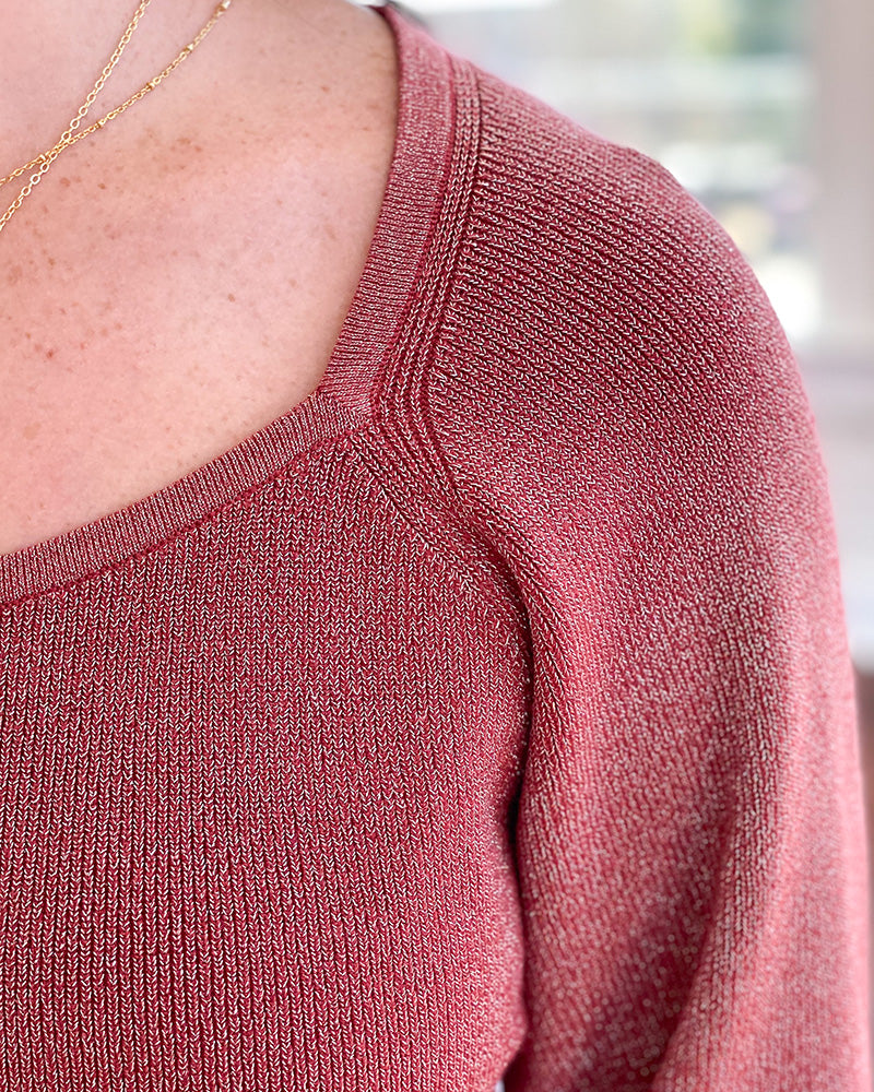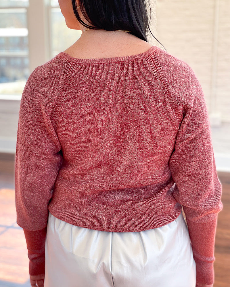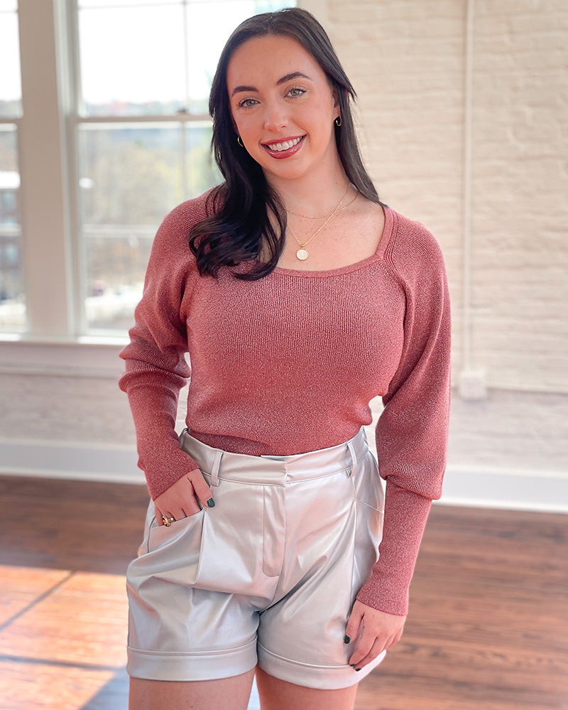 If subtle shimmer is more your style, look no further than the Dear John Kinsley Long Cuff Top in Festive Cantaloupe! We can't get enough of this easy-to-wear piece, perfect for going casual with jeans or dressing up with some silver shorts and silver jewelry!