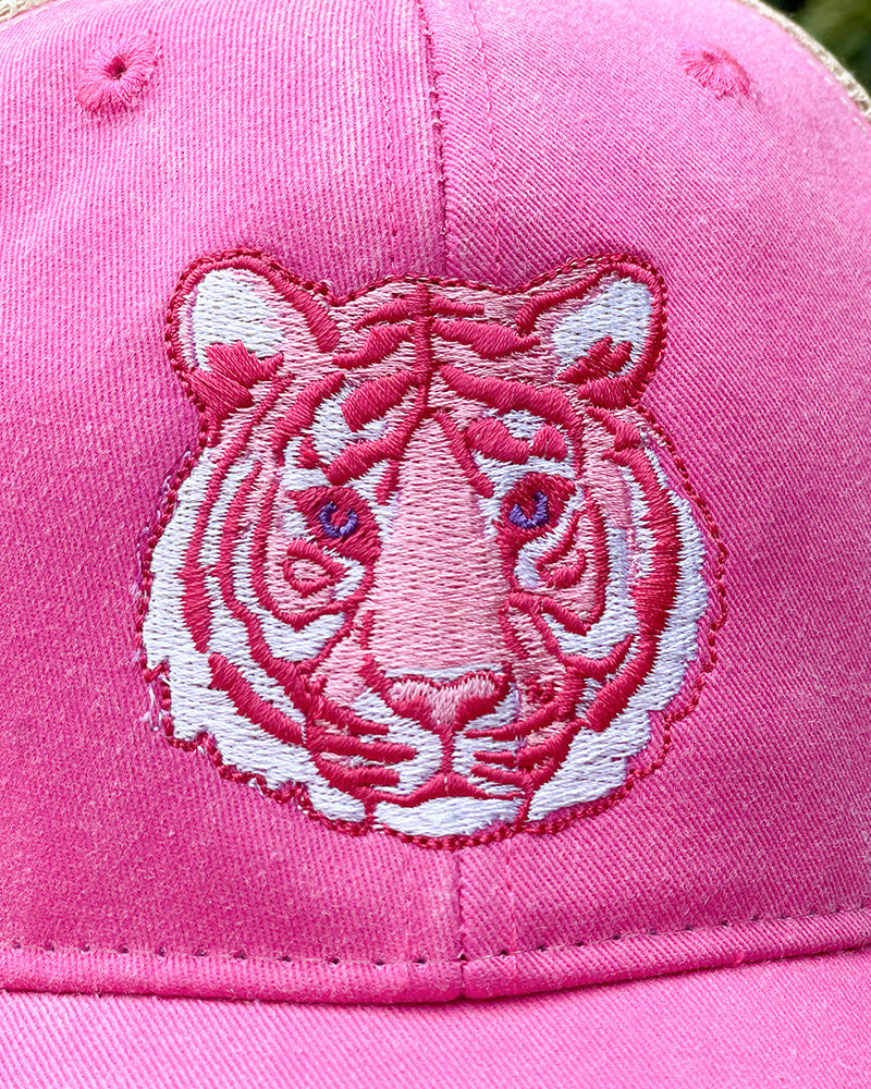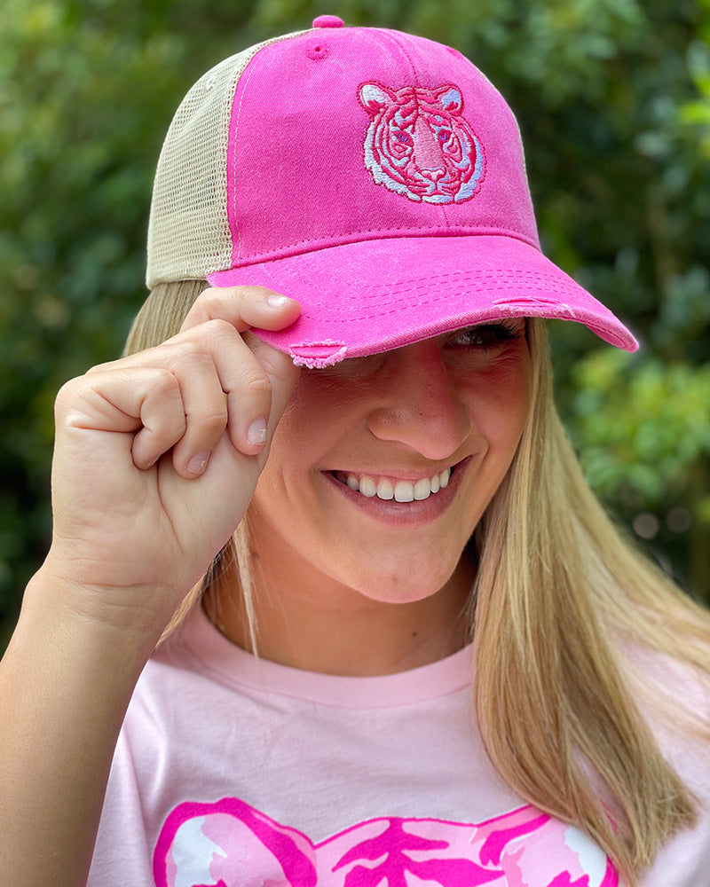 Rep the Tigers and your favorite color in this Pink Easy Tiger Baseball Hat! The snapback makes it adjustable to fit most. Pair it with your favorite Graphic Tee for a cute gameday accessory!