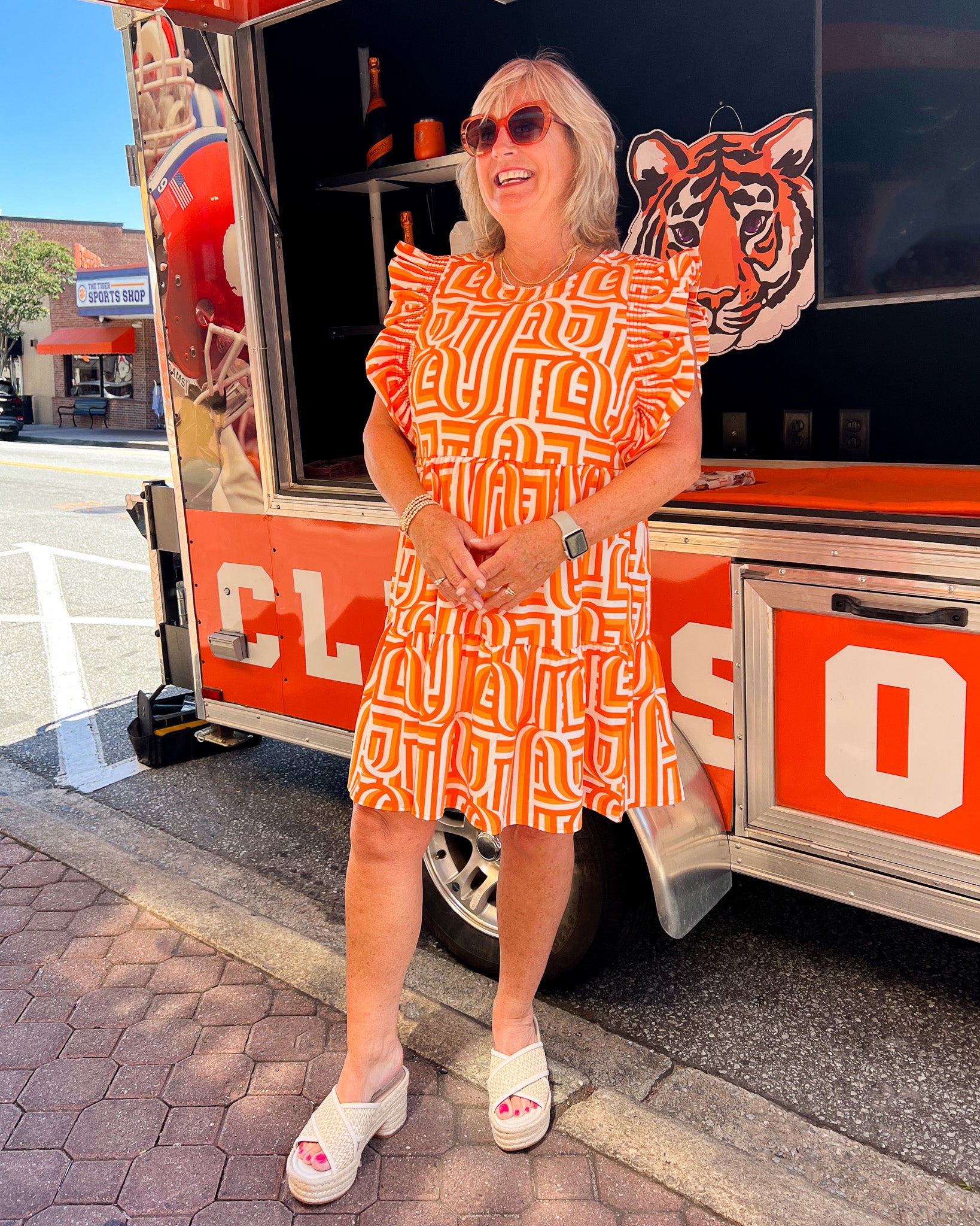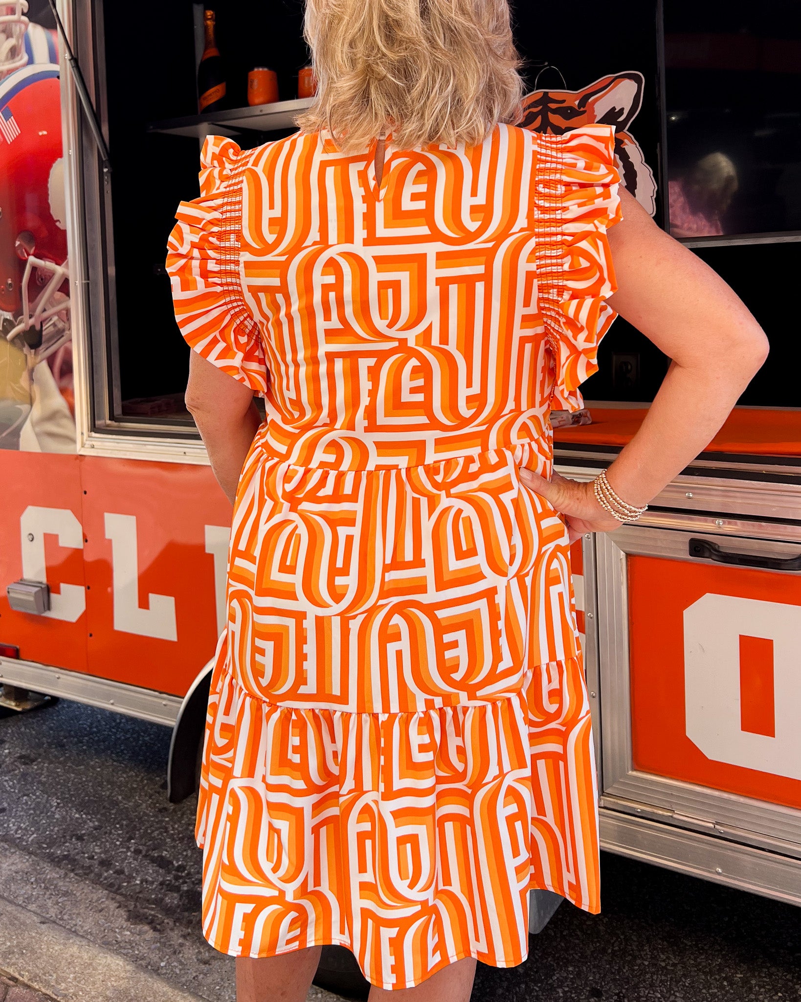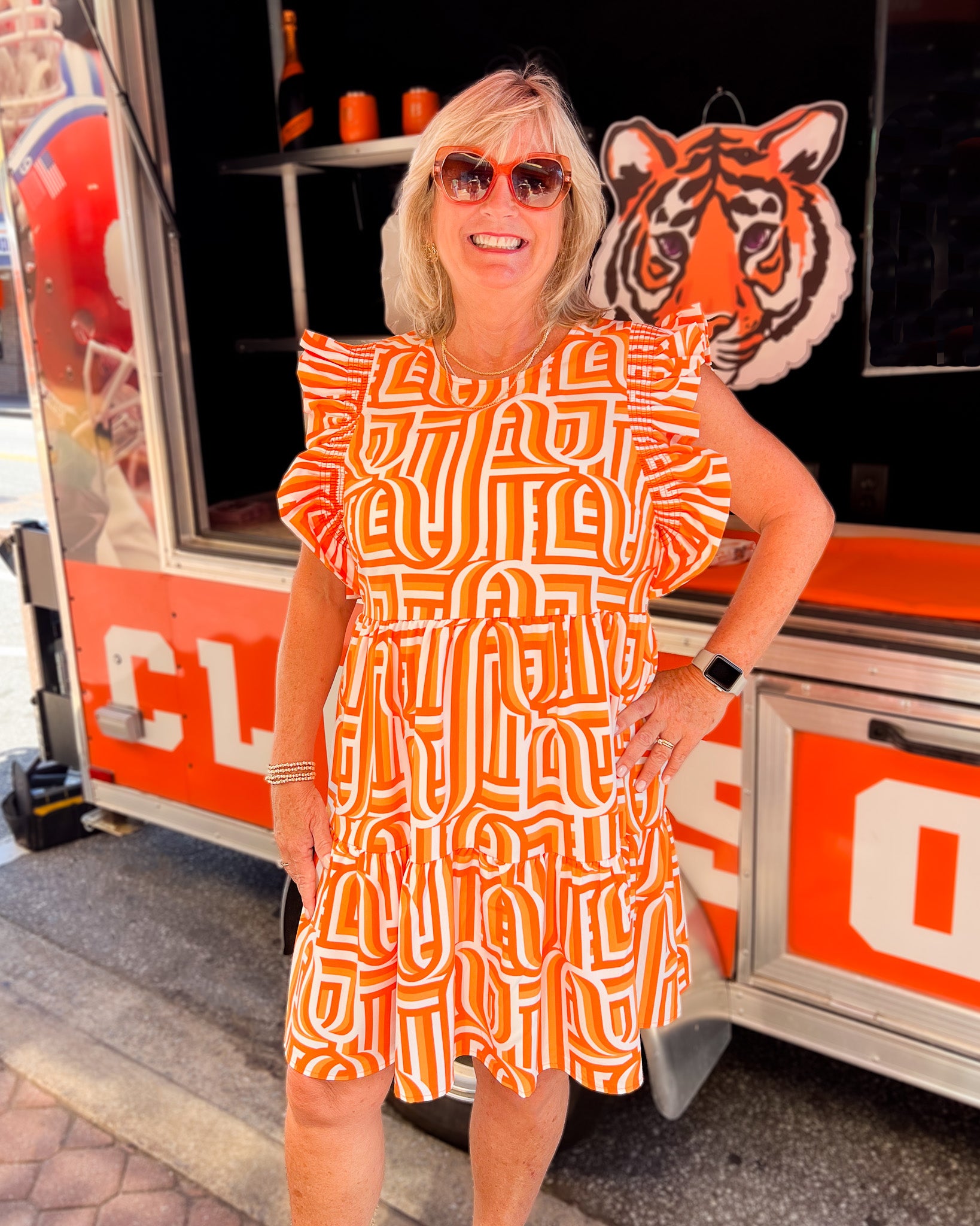 The perfect dress to cheer on the Tigers when they score a TD! This lightweight material will help you stay cool on the hottest game days, and this beautiful retro pattern is a stand out in the crowd!