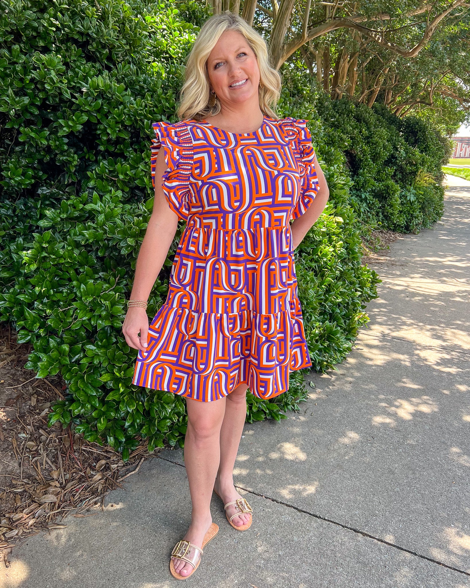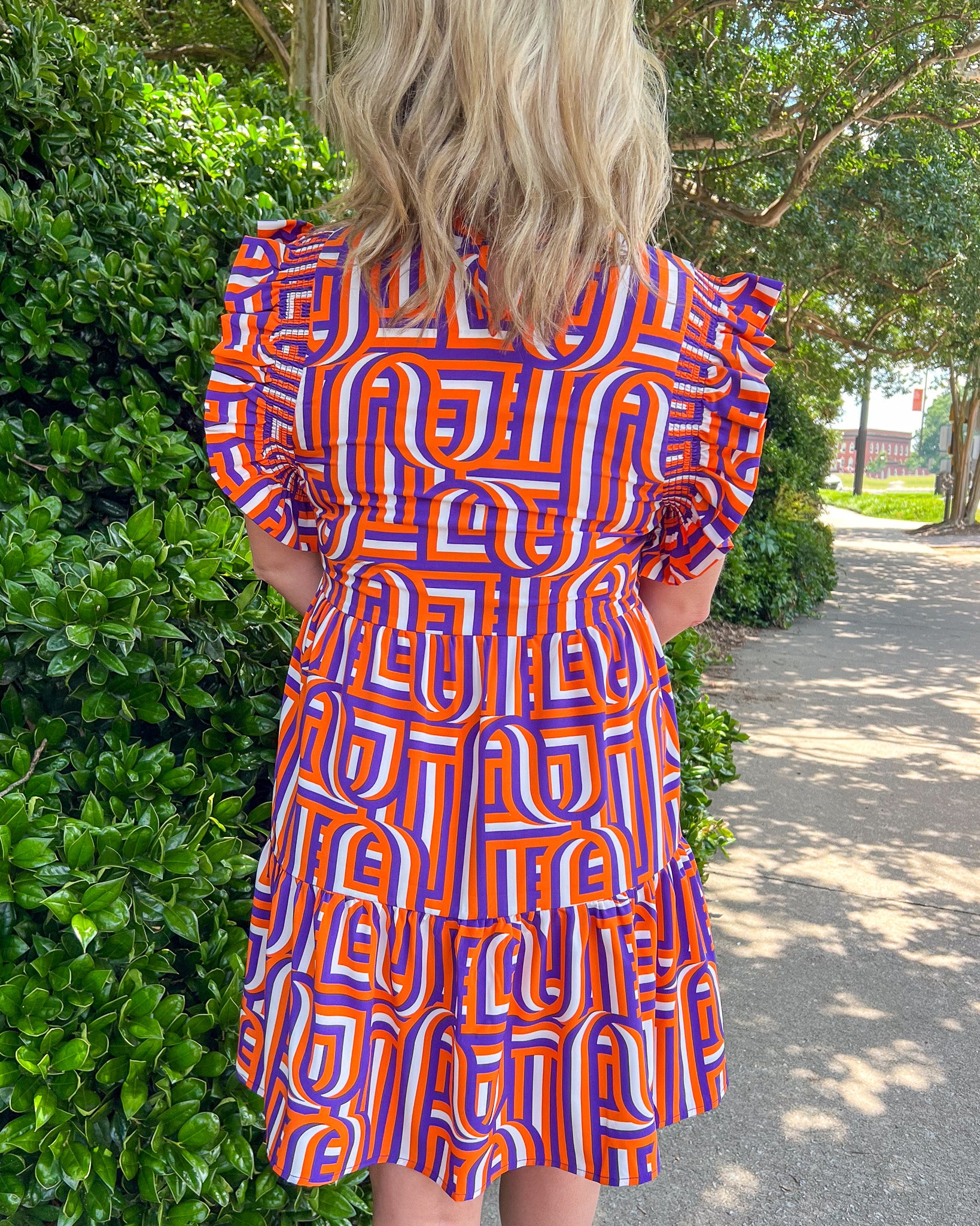 The perfect dress to cheer on the Tigers when they score a TD! This lightweight material will help you stay cool on the hottest game days, and this beautiful retro pattern is a stand out in the crowd!