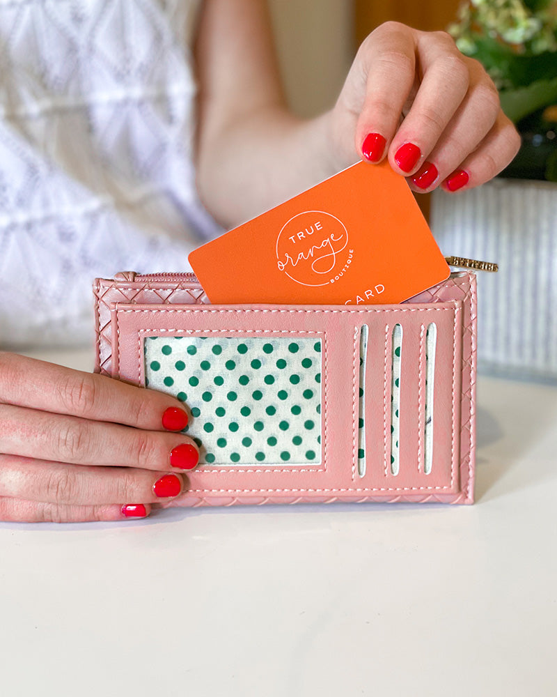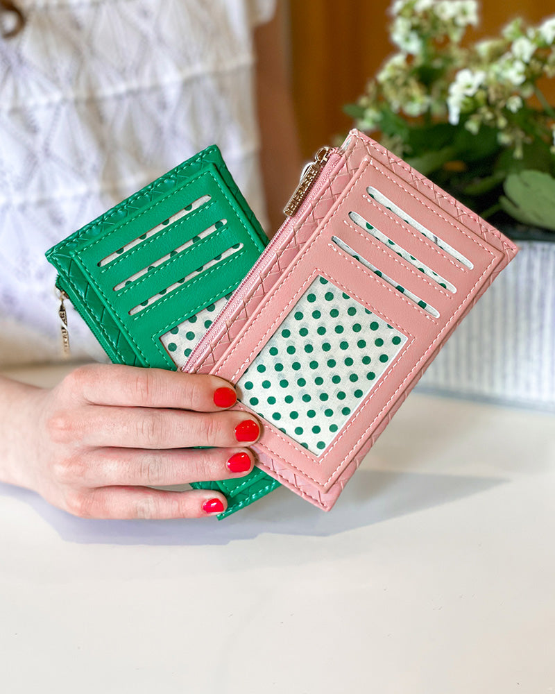 Everyone needs an easy grab-and-go wallet for ultimate organization! This stylish companion is great to carry alone when you just want your wallet, but also fits in your purse for a long day. Also available in Green.