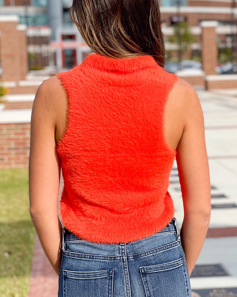 The transition sweater of your dreams is here! This cropped sweater tank has short sleeves for when its still a little warm and the fuzzy fabric and collar are so trendy! Pair it with a pair of your favorite jeans and some cute earrings!