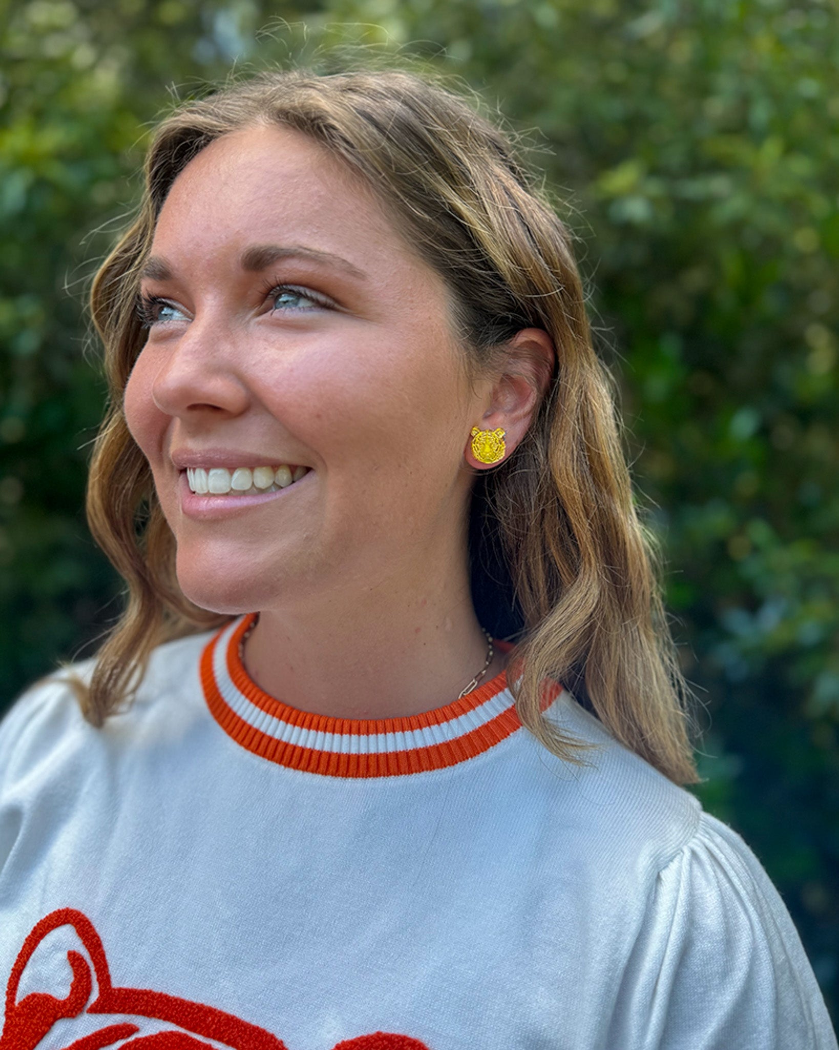We are loving these sweet tiger studs! Featuring a fierce tiger design, these are perfect for adding a touch of personality to your everyday look. These would be a perfect gift for an incoming freshman, graduate, or alumni!