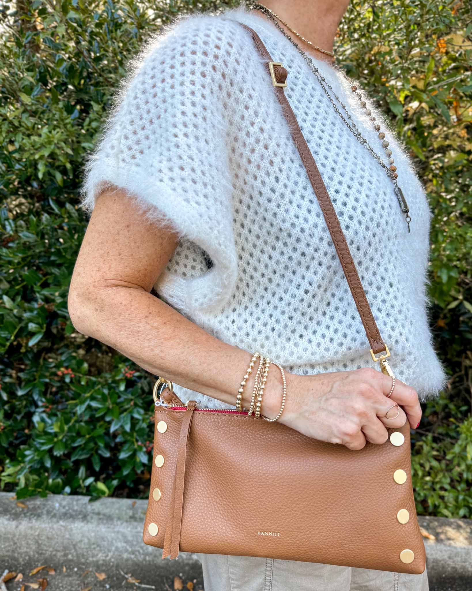 Have you ever seen a more stunning bag?! The warm tan color brings a gorgeous hue to any outfit, anytime of year! It is a perfect size and has two different size straps to fit your wants and needs! This is a must-have to your bag collection!