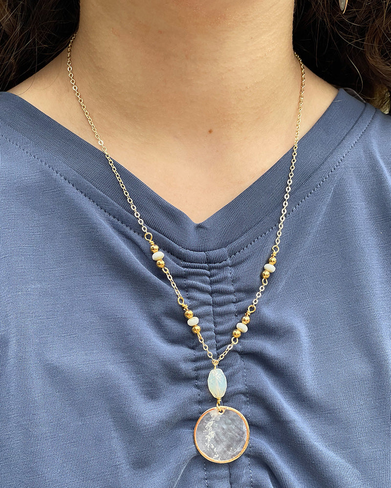 This is the layering necklace you need! With it's medium length and statement-making shell charm, this necklace goes great with a shorter or longer accent piece. Add this neutral to your collection to complete your beach wardrobe!