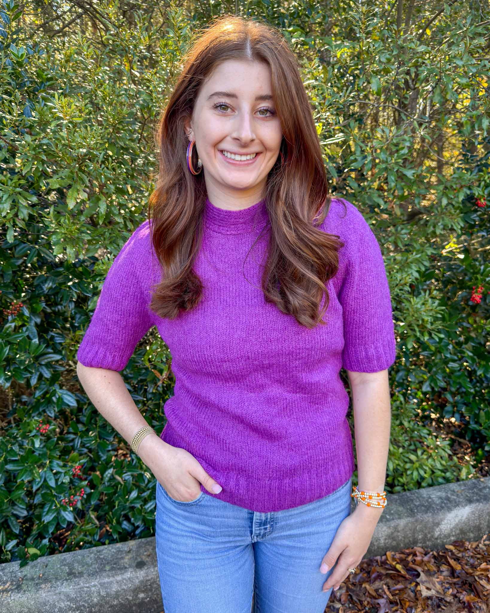 The puff sleeves and tie back for this sweater top make it stand out in the best way! Pair this one with your favorite jeans or some classy paper bag shorts for a night on the town or in Death Valley!