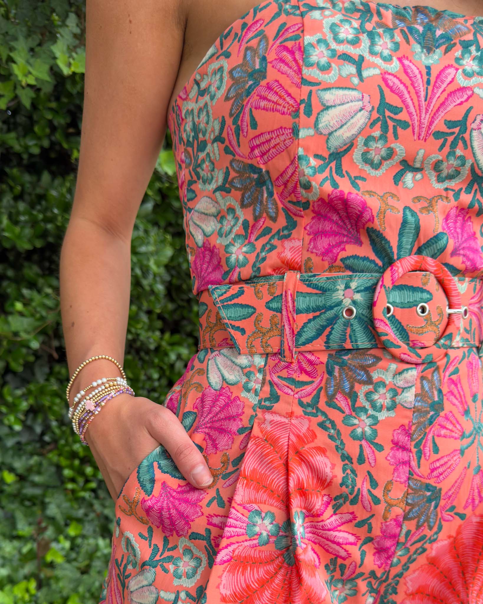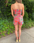 This romper has all the things- a fun print and a fabulous, flattering silhouette! Wear it now for a summer concert or night out, and wear it again in the fall to a game day!