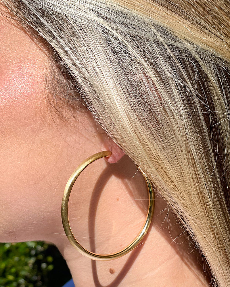 You can never go wrong with a gold hoop! These add a little something special to your look with their 3/4 hoop and classic look and a brushed outside with shinny inside.
