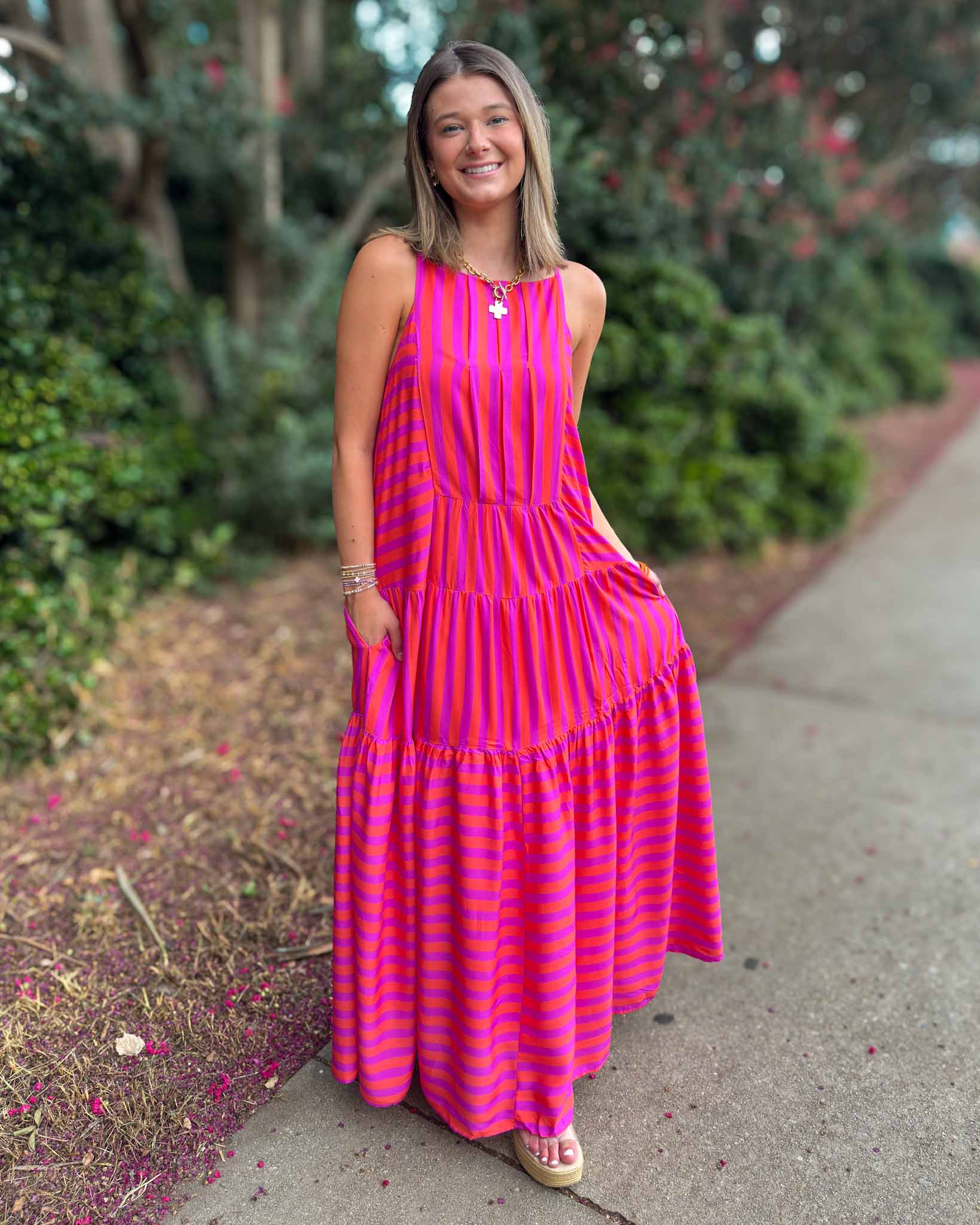 This dress is perfect for the Carolina heat this game day season! Lightweight, flowy, and features beautiful ruffle detailing - creating a flattering shape to the bodice and top. Whether you plan to wear this to Death Valley, a day with your girl friends, or even on an end of summer vacation - We are obsessed!