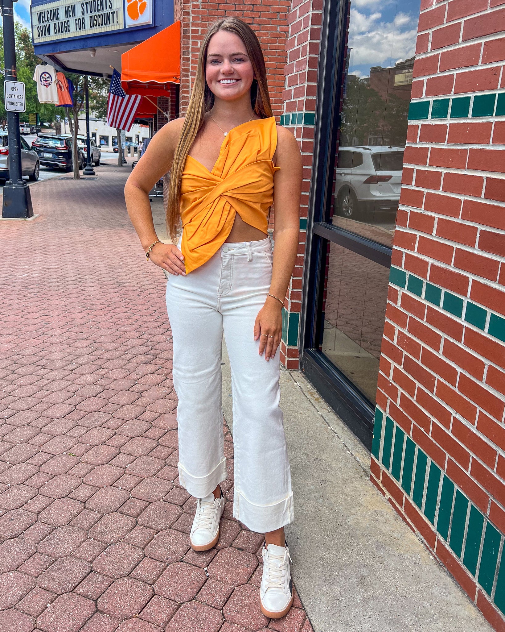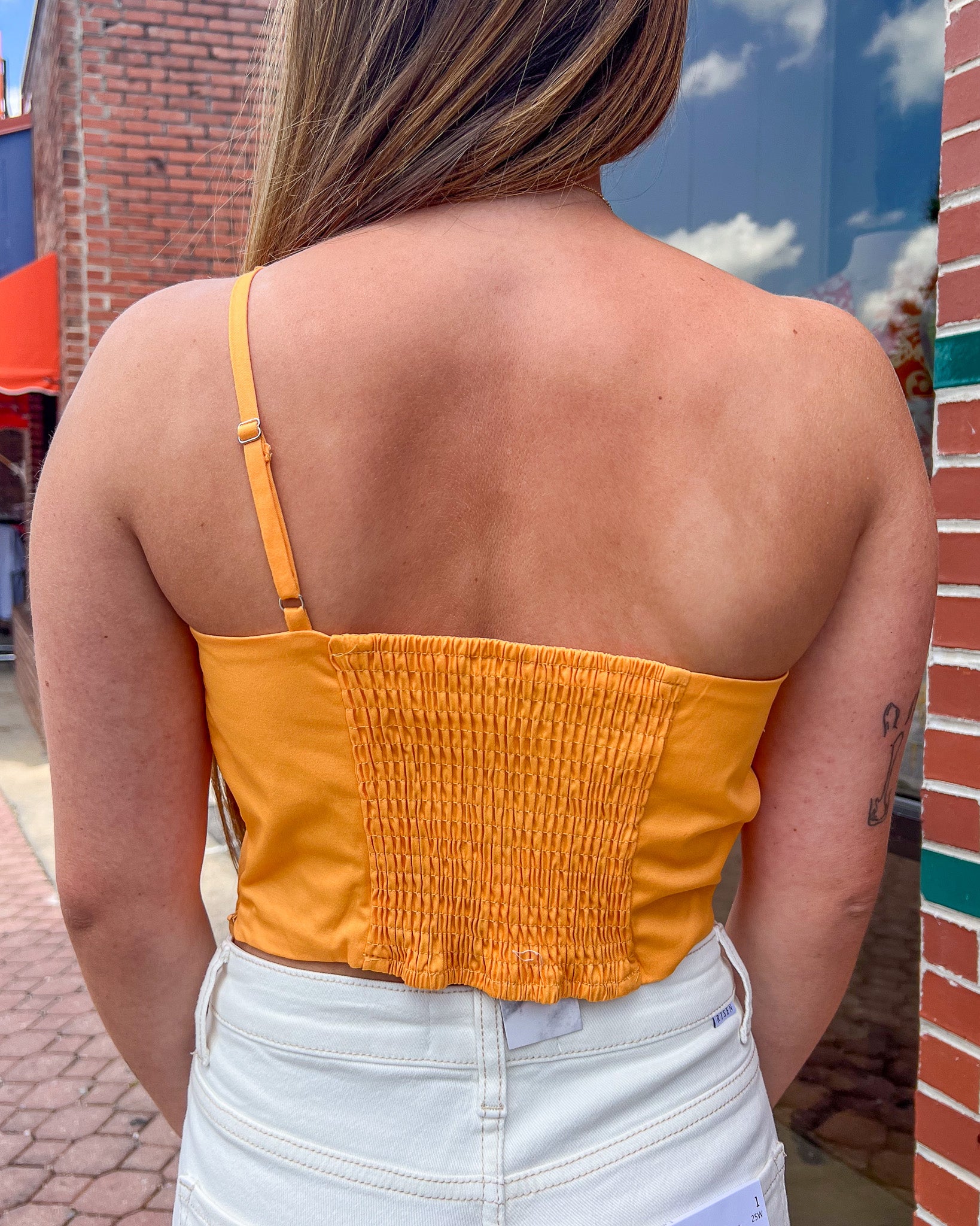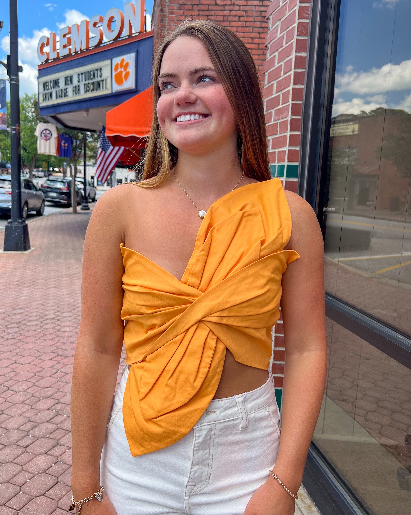 One Shoulder Knotted Twist Crop Top - Tangerine