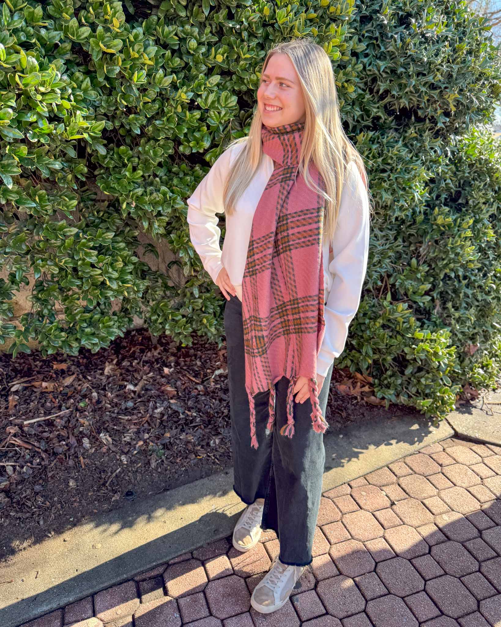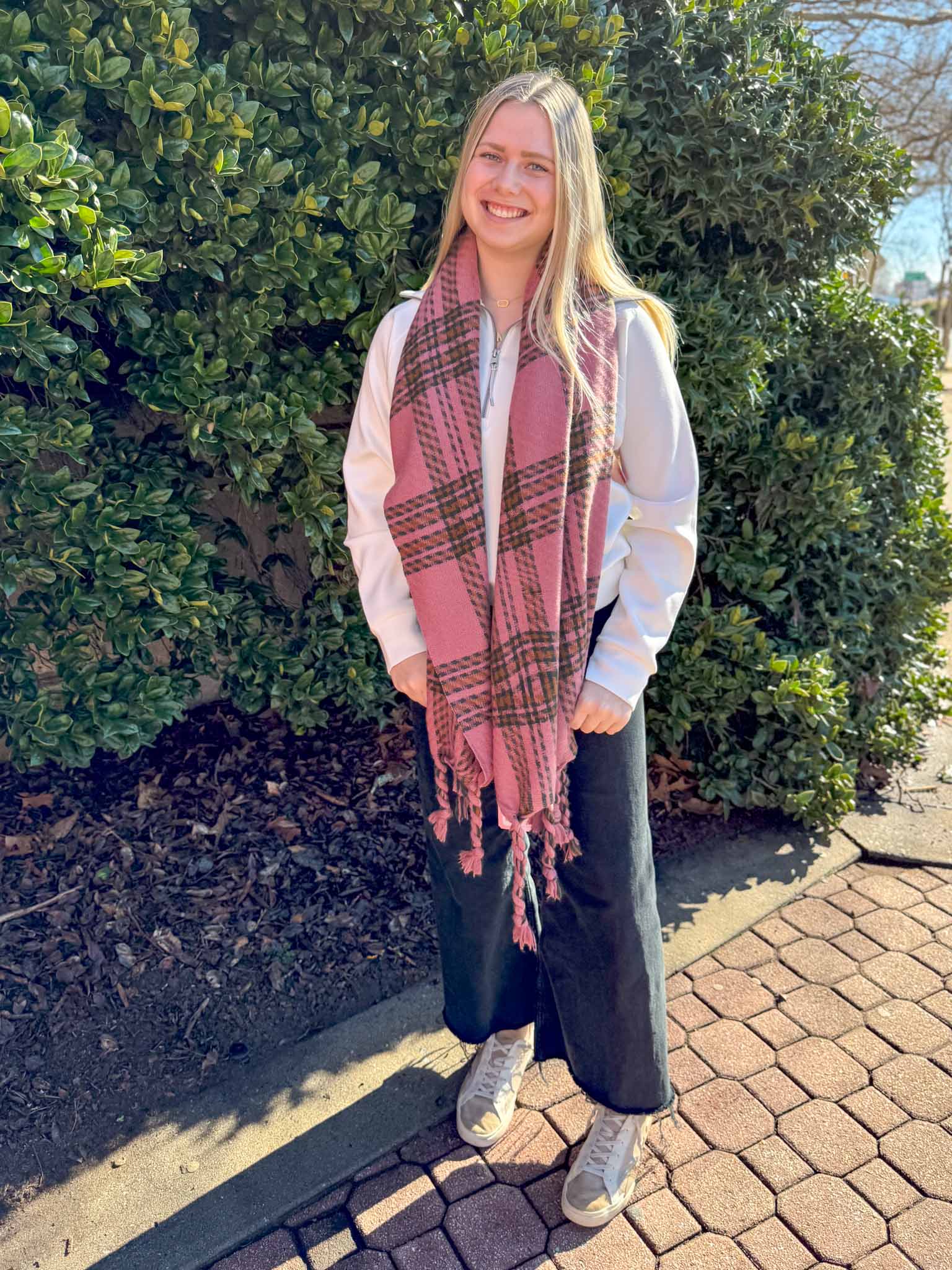Looking sophisticated while being warm is what we are looking for! This plaid scarf will elevate your look, keep you cozy, and have all your friends envying you. The design showcases a classic plaid pattern and a trendy fringe with a braided flair. The material is so soft, we couldn't wait to put it on!