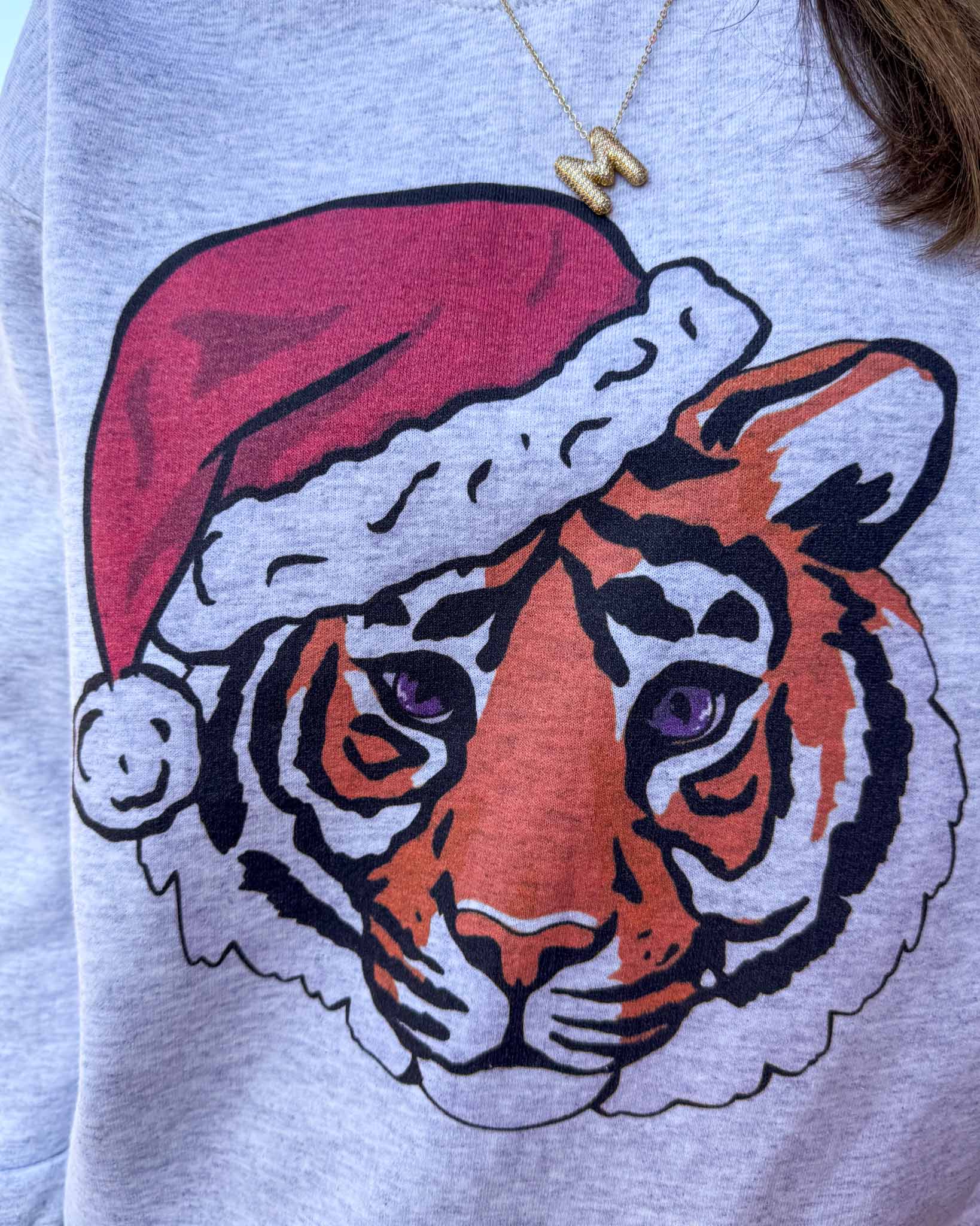 Be full of Christmas spirit all season long! Our Signature Tiger is ready for Christmas! This comfy sweatshirt is perfect for the chilly weather coming our way. Wear it with jeans or leggings for a more casual look! Be a Tiger fan full of Christmas cheer!