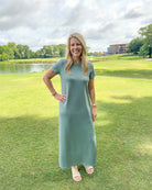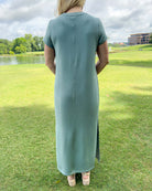 Simple, sleek, and effortlessly chic — this sage green maxi dress is a wardrobe staple. Designed with a soft, flowy fabric and relaxed short sleeves, it offers a flattering straight silhouette that’s easy to dress up or down. Whether you're heading to brunch, running errands, or enjoying a casual day out, this versatile piece keeps you comfortable while looking put together.
