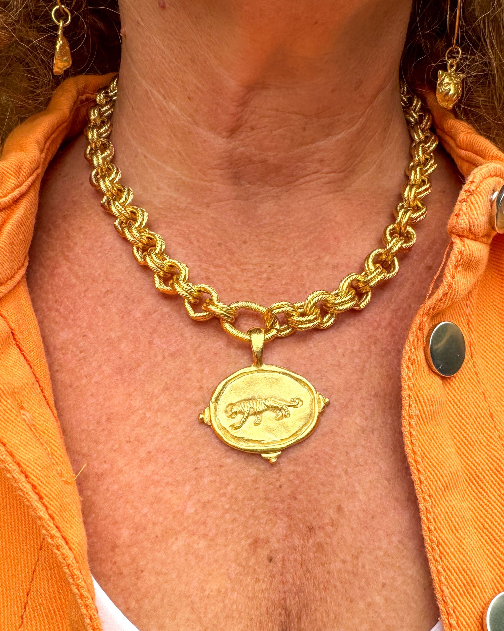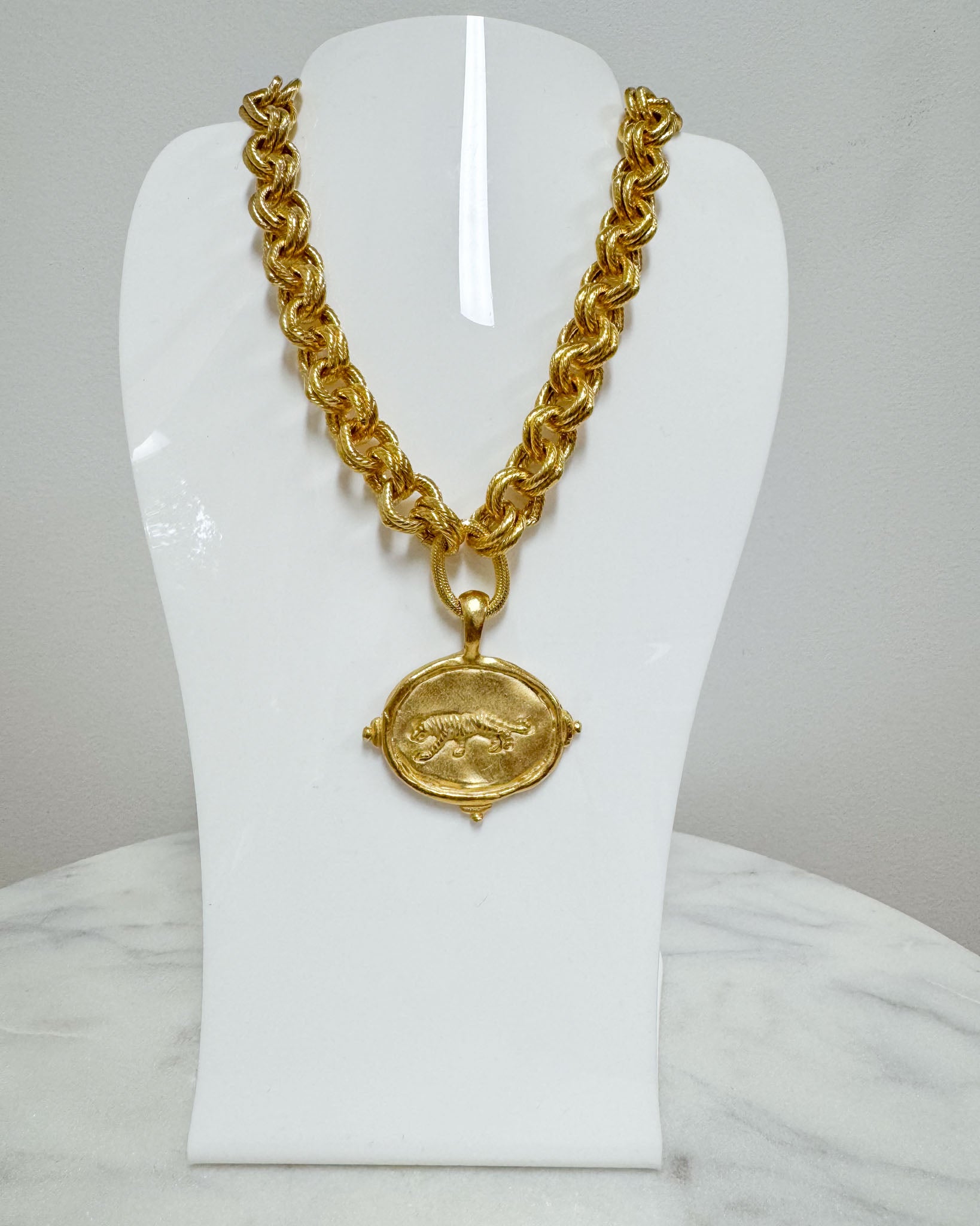 Who doesn't love a good chunky necklace? This tiger pendant necklace is stunning and would be perfect with any outfit you have in mind. So elegant, it is sure to dress up your next outfit for game day!