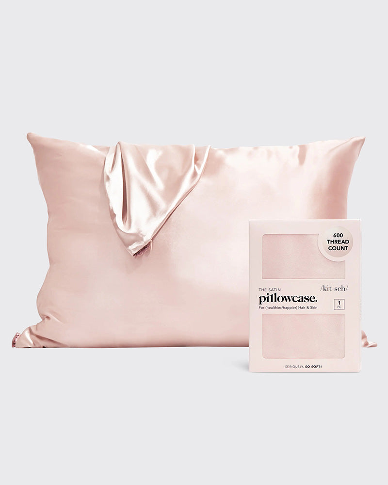 Enjoy a luxurious good night's sleep on this blush satin pillowcase! It's known to reduce morning wrinkles, keep your hair and skin more hydrated, and eliminate static. What a sweet gift!
