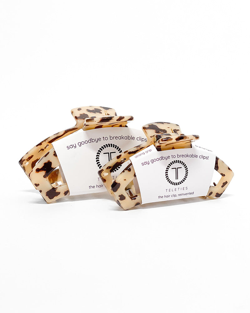 Throw your hair up in our Teleties Medium Blonde Tortoise Clip! The unique open design allows your hair to show through, and its bendable teeth bounce back to their shape immediately.