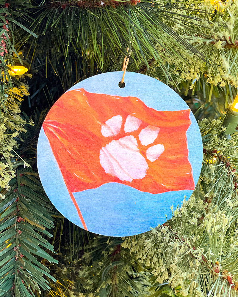 This festive ornament is custom made for True Orange Boutique from an original painting by Cherry Day Art! Add it to your tree to bring you joy this Christmas season, or add it to your tiger's gift for a special touch!