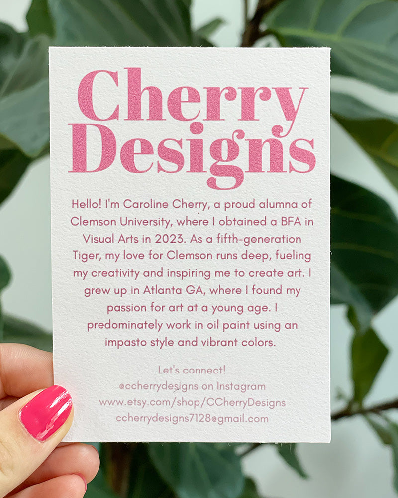 Bring a pop of color and Clemson to any room with this beautiful print, created exclusively for True Orange Boutique from Cherry Day Art! This print is sure to spark a smile and memories of times in Tiger town.